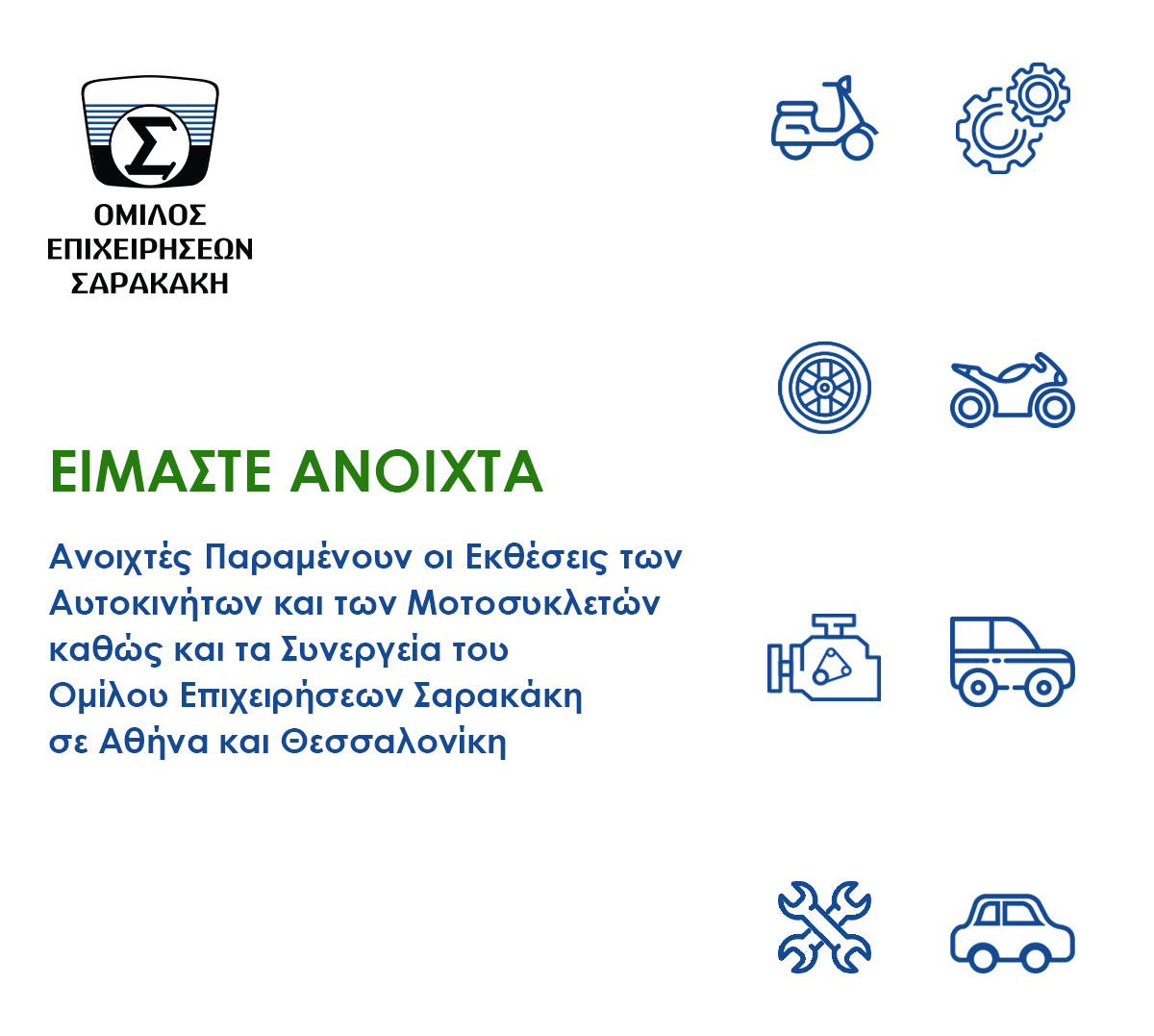 στις εκθέσεις αυτοκινήτων/μοτοσικλετών και τα συνεργεία εμπίπτει στην κατηγορία 2 των κατ΄ εξαίρεση μετακινήσεων (μετάβαση σε εν λειτουργία κατάστημα προμηθειών αγαθών